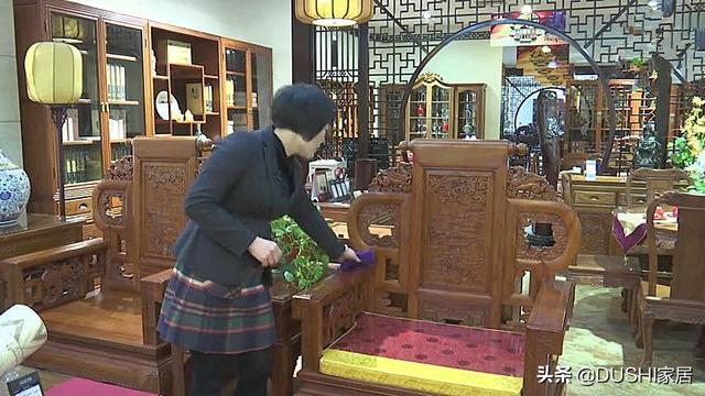 像这种缅甸花梨木的红木家具,一般都是一个做生漆和一个打蜡工艺,这一套沙发的话呢,做的就是一个生漆的公益,这种生漆的话呢可以更好地来保护我们这个红木家具,总体来讲,我们都有那个南漆北蜡一说,因为南方呢气候是比较潮湿的,生漆有一个防水防高温的一个特性,所以我们这一套做生漆的红木家具,在正常的使用情况下,至少10~20年是不需要做任何特殊处理的啊。如果要是碰到恶化灰尘或者是倒了污渍在上面的话呢,我们只要拿那个呃清水洗干净的软毛巾,拧干水之后的话呢,轻轻的往脏的地方一抹一擦就很干净啊。