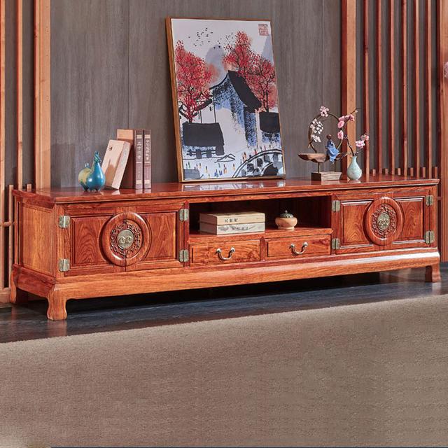 勐狮红木刺猬紫檀实木柜新中式忆江南地柜实木电视柜中式客厅组合