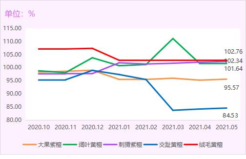 2021年5月,东阳红木家具价格总指数连续两个月上涨。其中,家具成品价格指数较上月小幅回升;红木原材料价格指数继续强势走高。东阳红木家具行业处于不景气区间。