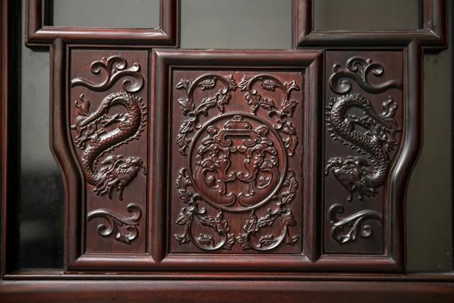 餐边柜将生活的感动转化为细致的口味,符合人体学尺度,无一不流露着那份高贵典雅。纯手工雕花艺术纹饰雕刻草龙纹,此套草龙餐边柜雕刻层次丰富,造型美观,富有动感。草龙纹寓意着吉祥、幸福、美好。